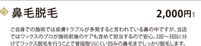 一番人気の眉毛デザイン+鼻毛脱毛のコースが今だけ割引!