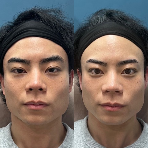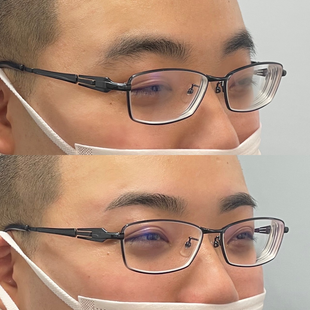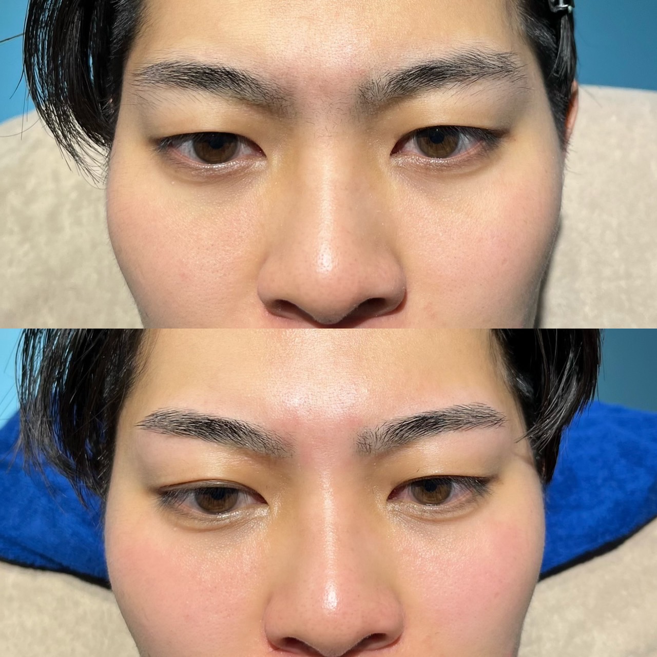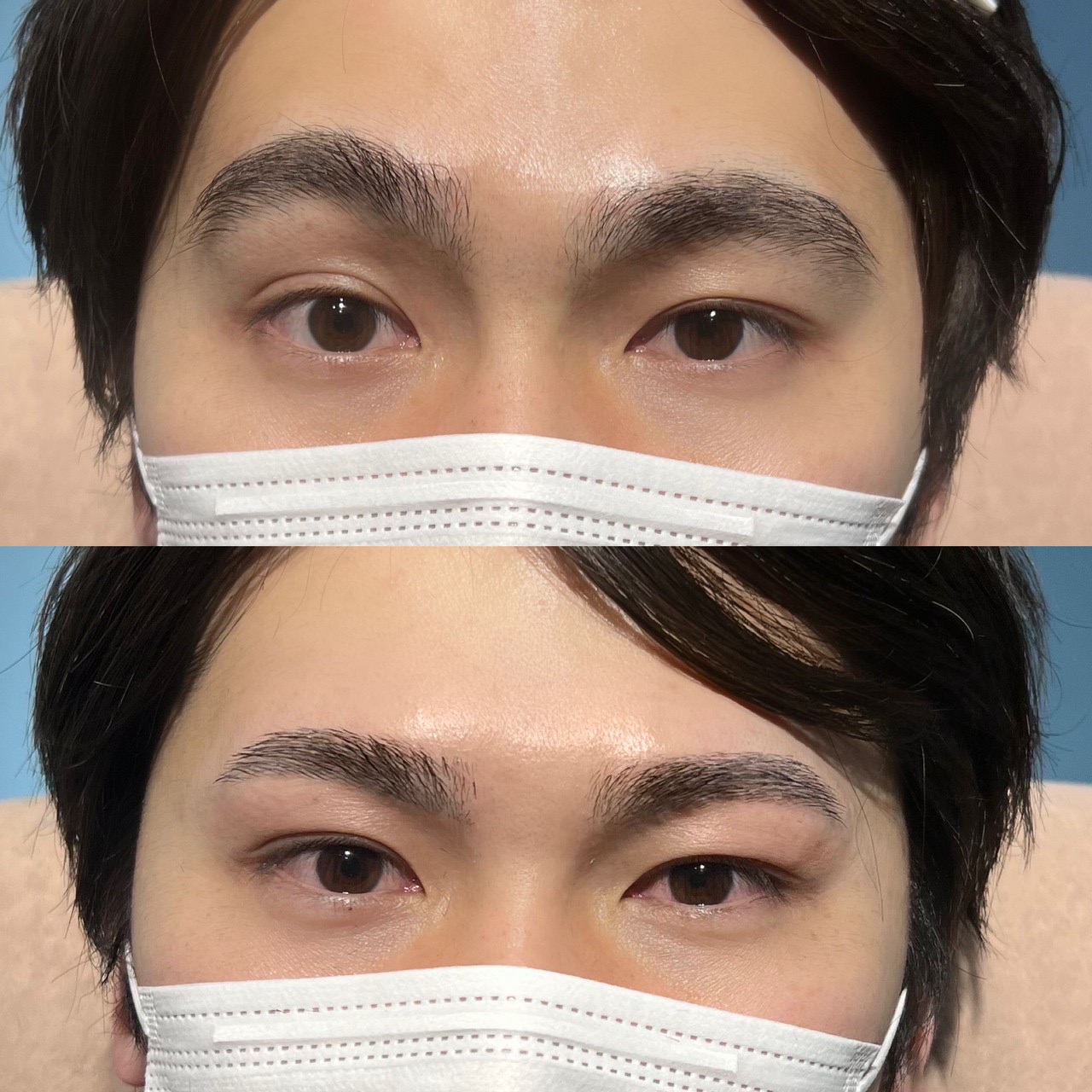 右の尾丘筋がとても動くのと、右眉の毛の生え方がほぼ上向きなのに対し、左眉は毛の生え方が横向きなのでとても左右差がでてしまっていましたので、普段の自然な表情になるように会話をしながら丁寧にデザインをしました。